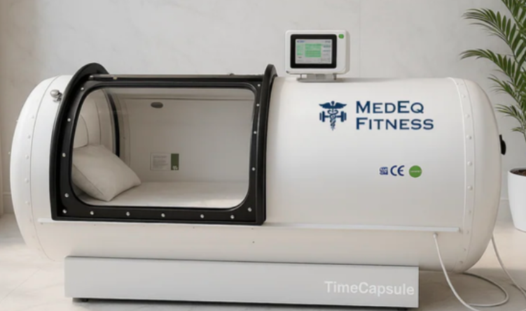 A medical device that allows a person to breathe 100% oxygen in an environment where the air pressure is higher than normal atmospheric pressure.